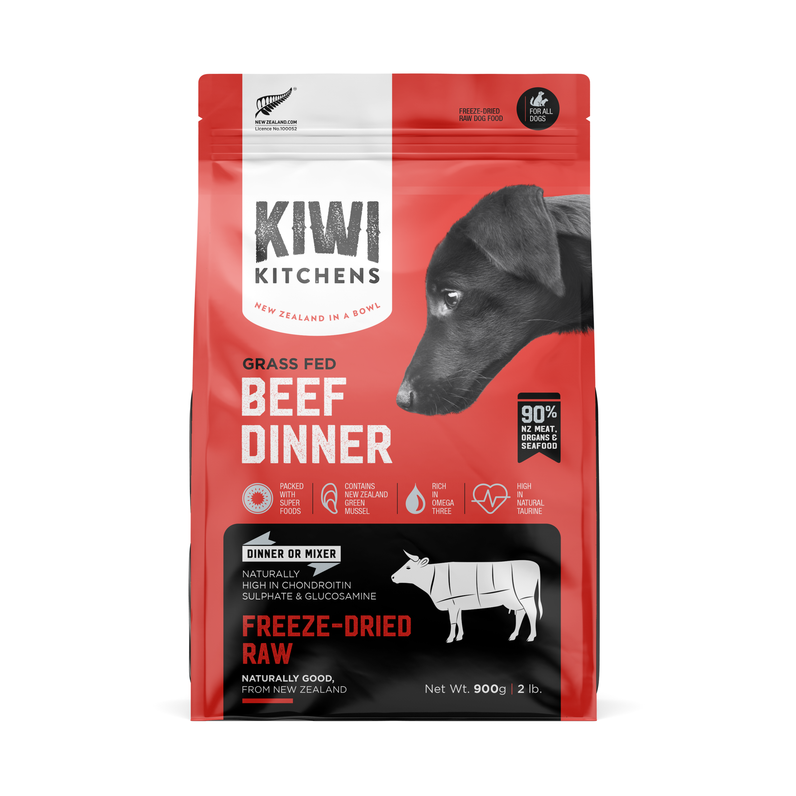 ‘Kiwi Kitchens Freeze-Dried RAW Grass-Fed Beef Dog Food is made from high quality whole foods sourced entirely from the farms and waters of New Zealand. Along with these high-quality proteins, we include superfoods like New Zealand Green-Lipped Mussel, New Zealand King Salmon, Kiwifruit, and Blackcurrants.