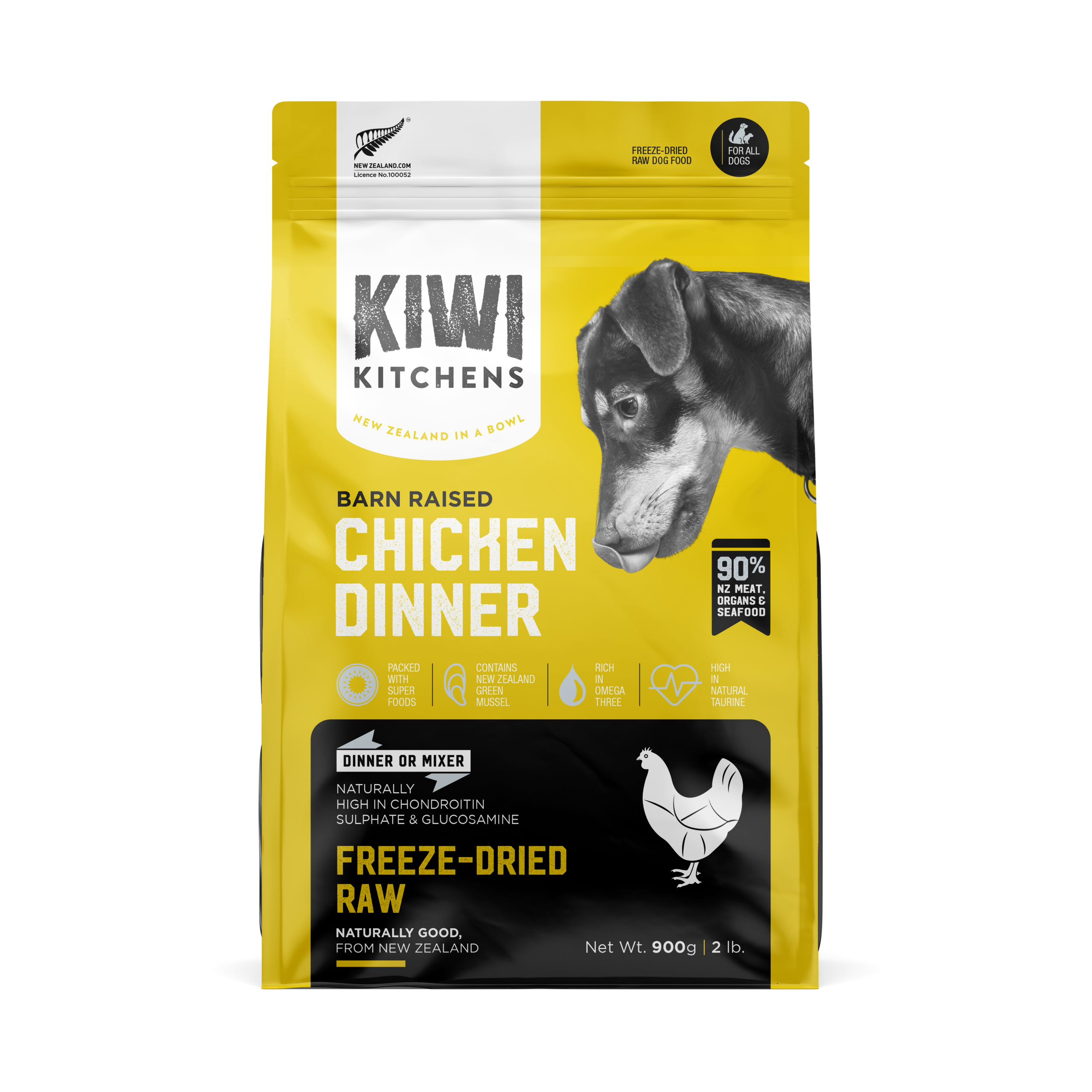 Kiwi Kitchens Freeze-Dried RAW Barn-Raised Chicken Dog Food is made from high quality whole foods sourced entirely from the farms and waters of New Zealand. Along with these high-quality proteins, we include superfoods like New Zealand Green-Lipped Mussel, New Zealand King Salmon, Kiwifruit, and Blackcurrants.